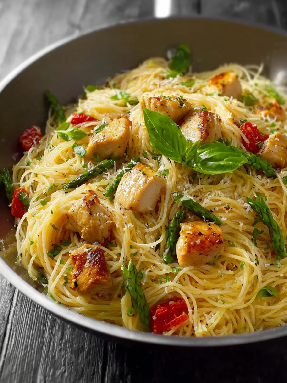 The beauty of this recipe lies in its ability to deliver a comforting, home-cooked meal in just 25 minutes. Angel hair pasta, known for its thin strands and quick cooking time, absorbs flavors beautifully, making it an ideal canvas for the tender chicken and vibrant veggies. Picture yourself tossing freshly cooked pasta in a light sauce, paired with succulent pieces of chicken breast, all while enjoying a glass of your favorite wine or unwinding with a podcast. It’s this blend of convenience, flavor, and a hint of indulgence that makes this dish a must-have in your culinary repertoire.