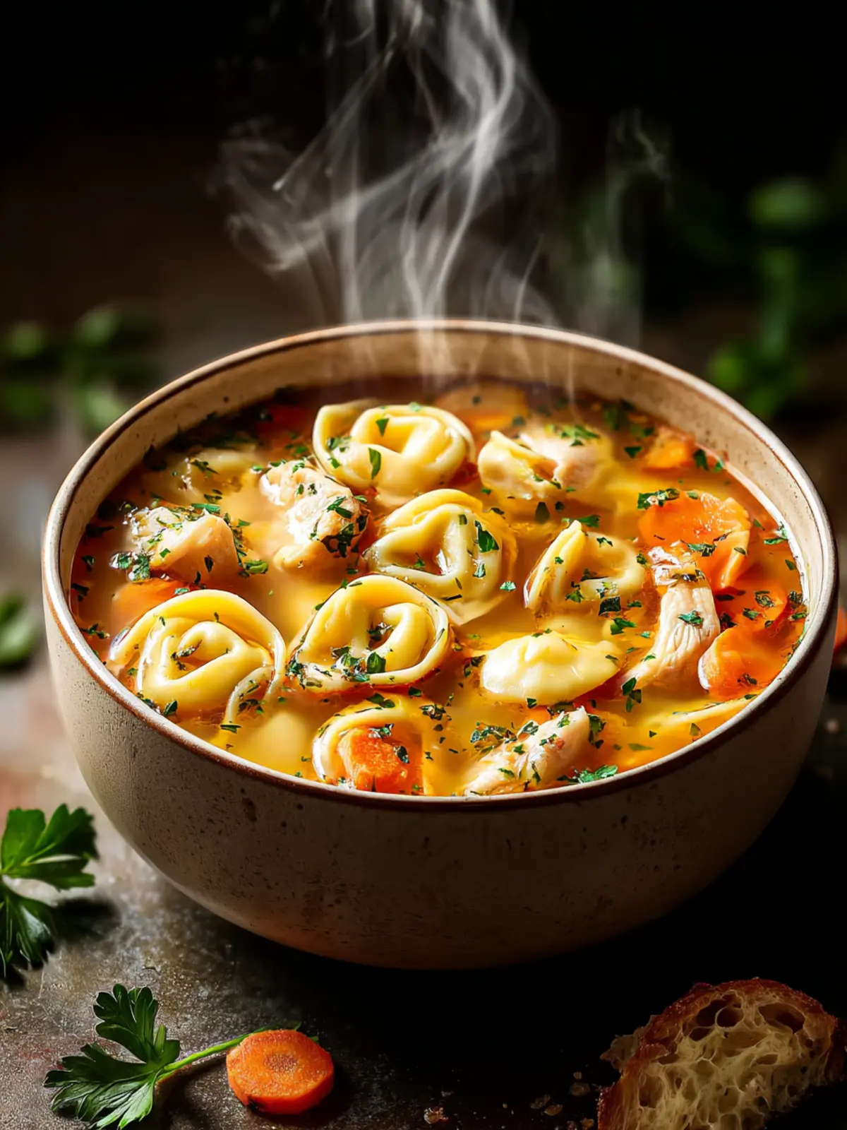 - Season your beautiful Chicken Tortellini Soup with salt and pepper to your liking. Garnish with fresh parsley just before serving for that pop of color!