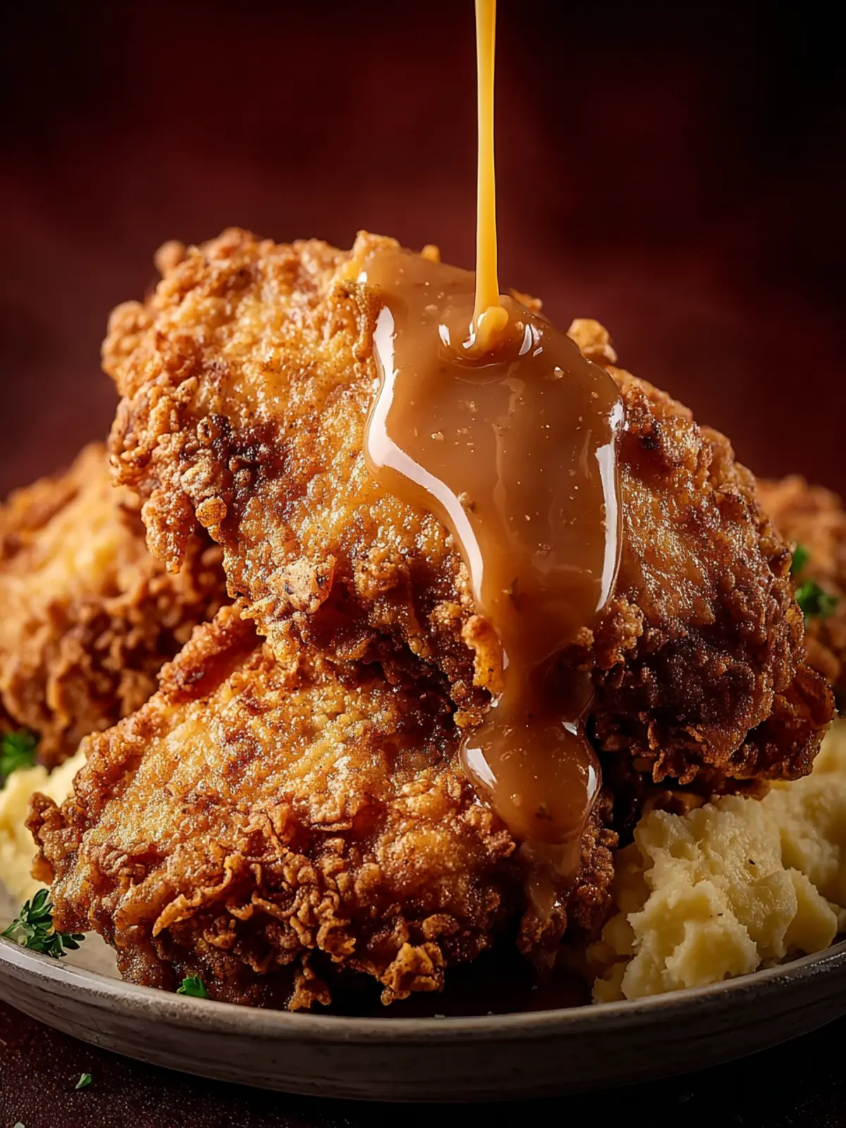 Serving your chicken on a rustic wooden platter adds a charming farmhouse feel. Drizzle the gravy generously over the chicken and mashed potatoes, making it visually stunning. Sprinkle freshly chopped parsley for a touch of color and taste. Guests won’t be able to resist diving right in!