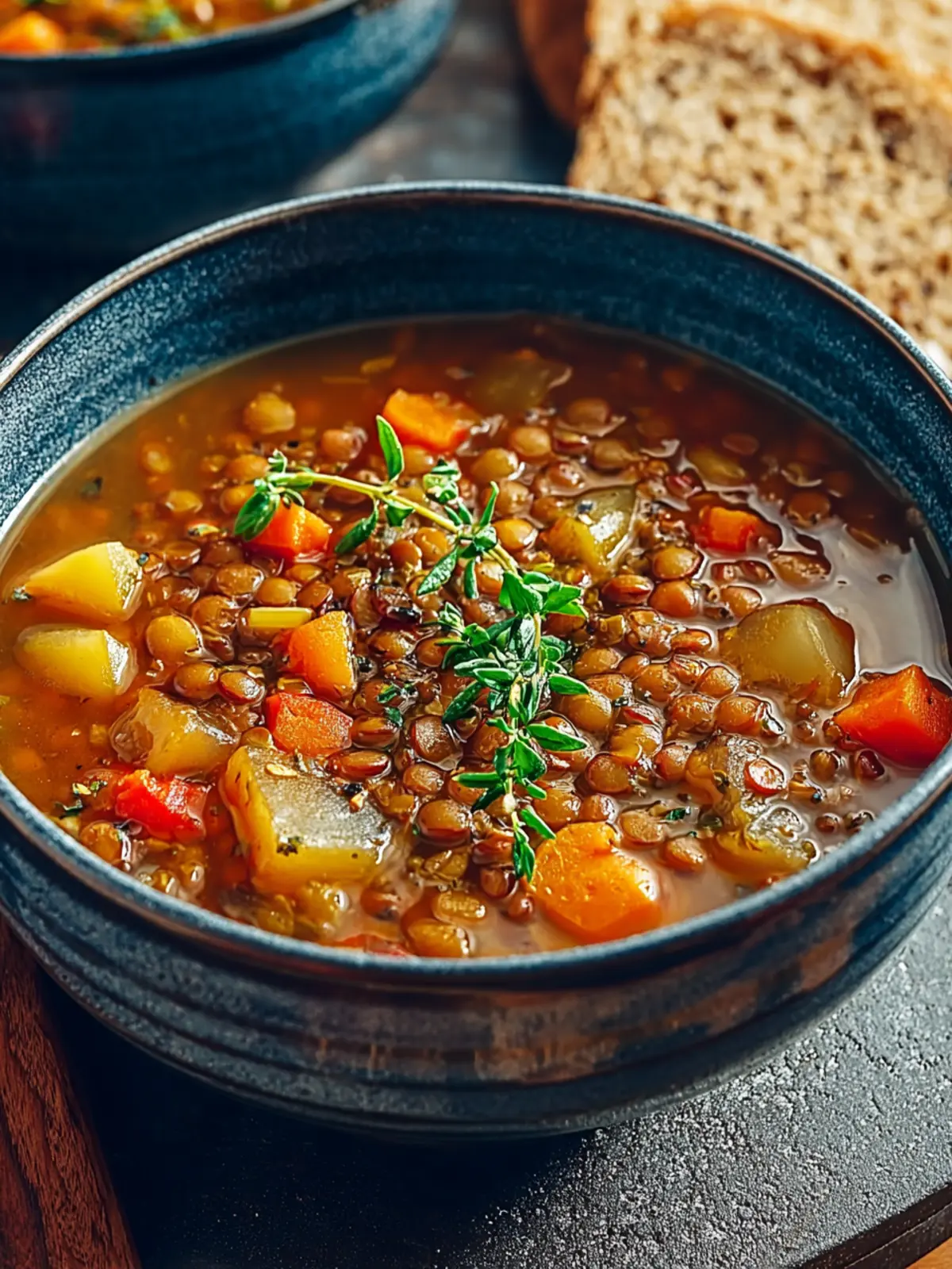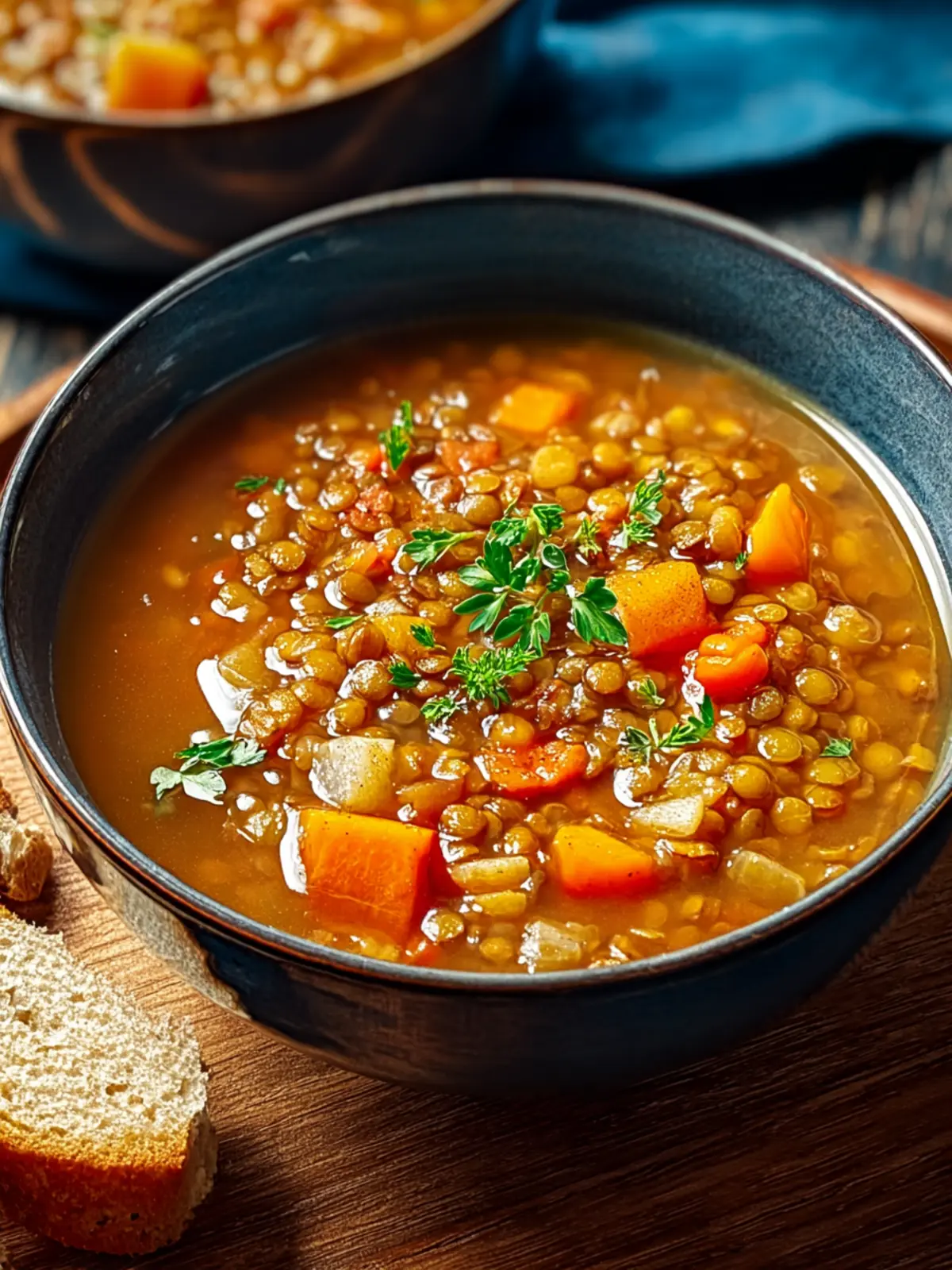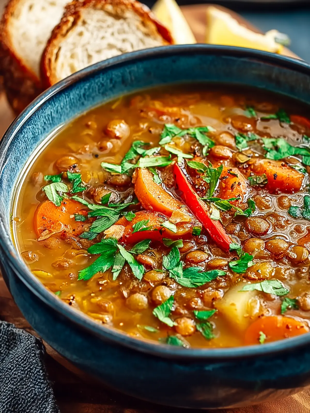 This hearty lentil vegetable soup is packed with flavor and nutrition, perfect for a comforting meal.