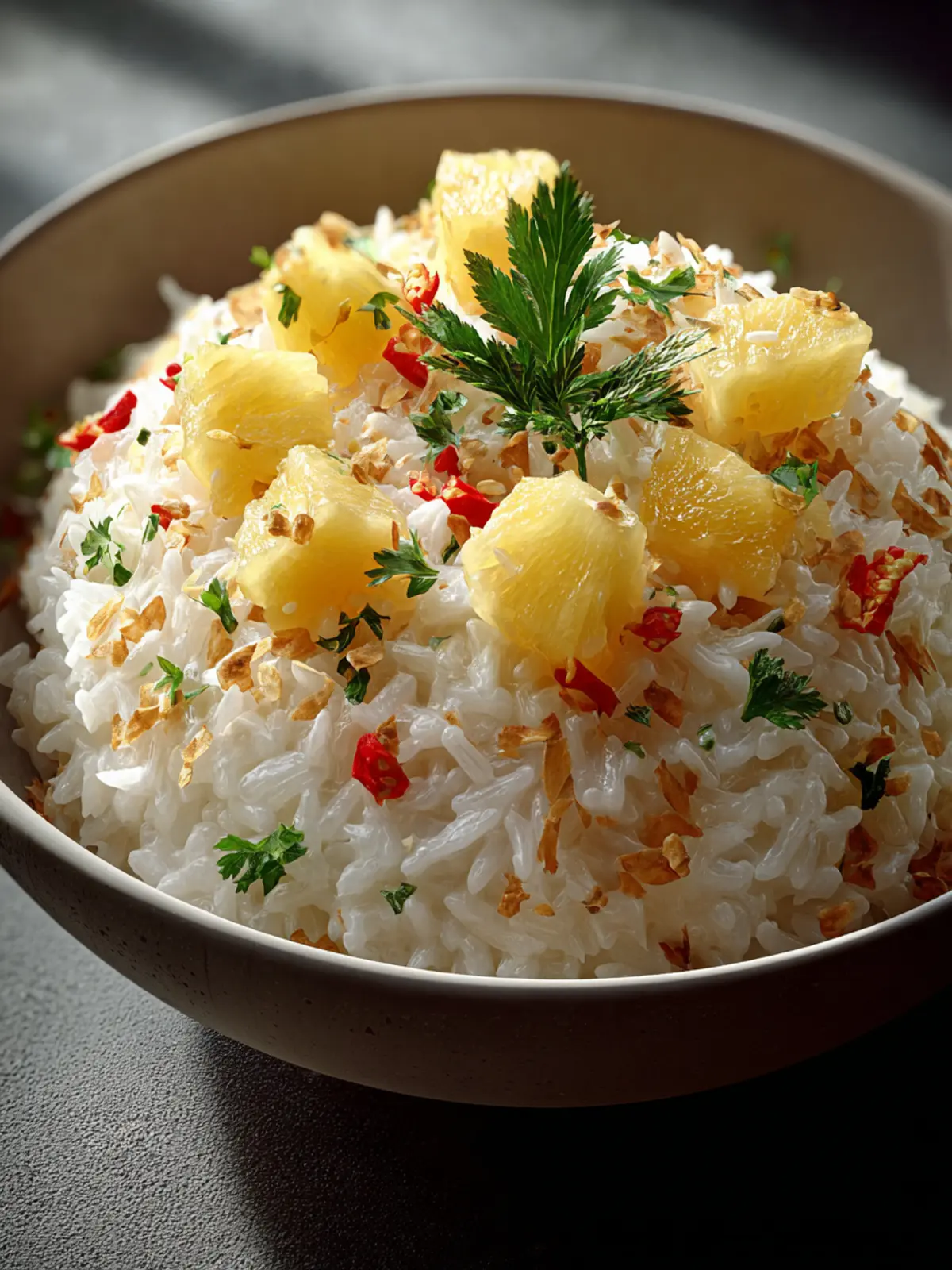 To intensify the creaminess, consider adding a pinch of salt when simmering the rice in coconut milk. It enhances the natural sweetness of the coconut and pineapple. You can also infuse your rice with a piece of pandan leaf if you can find it—this adds an aromatic note that pairs wonderfully with tropical flavors.