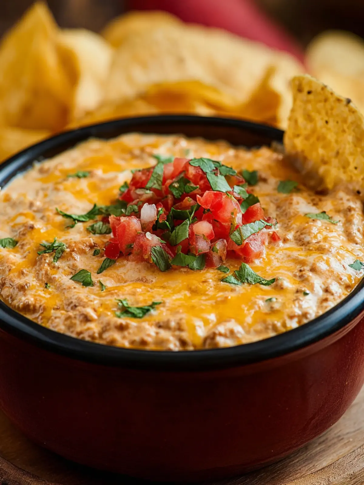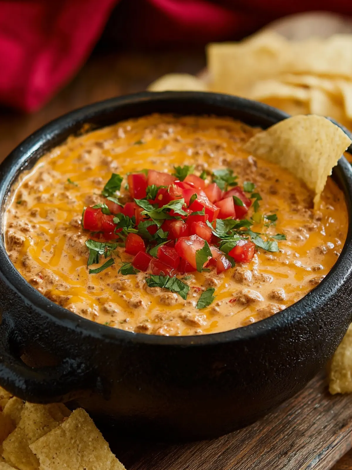 A rich and creamy Velveeta beef dip, perfect for parties or game day!