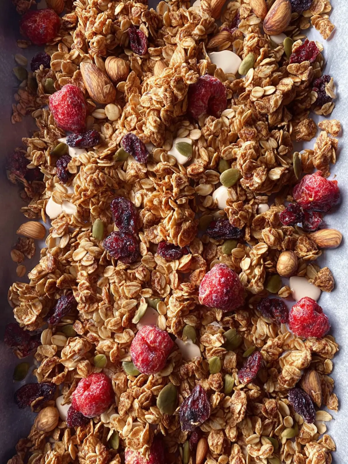 • This granola is versatile; feel free to add other nuts, seeds, or dried fruits as desired.