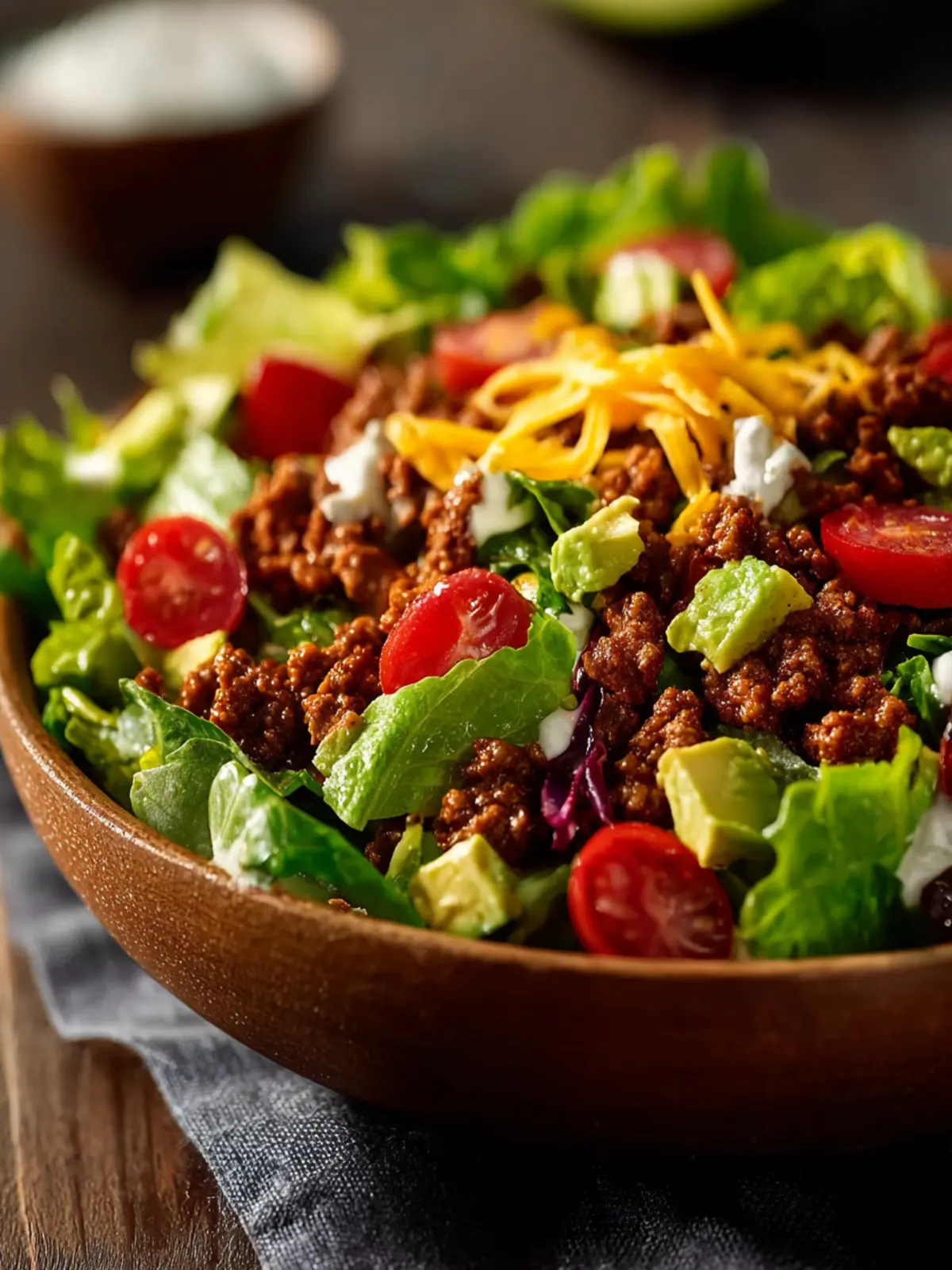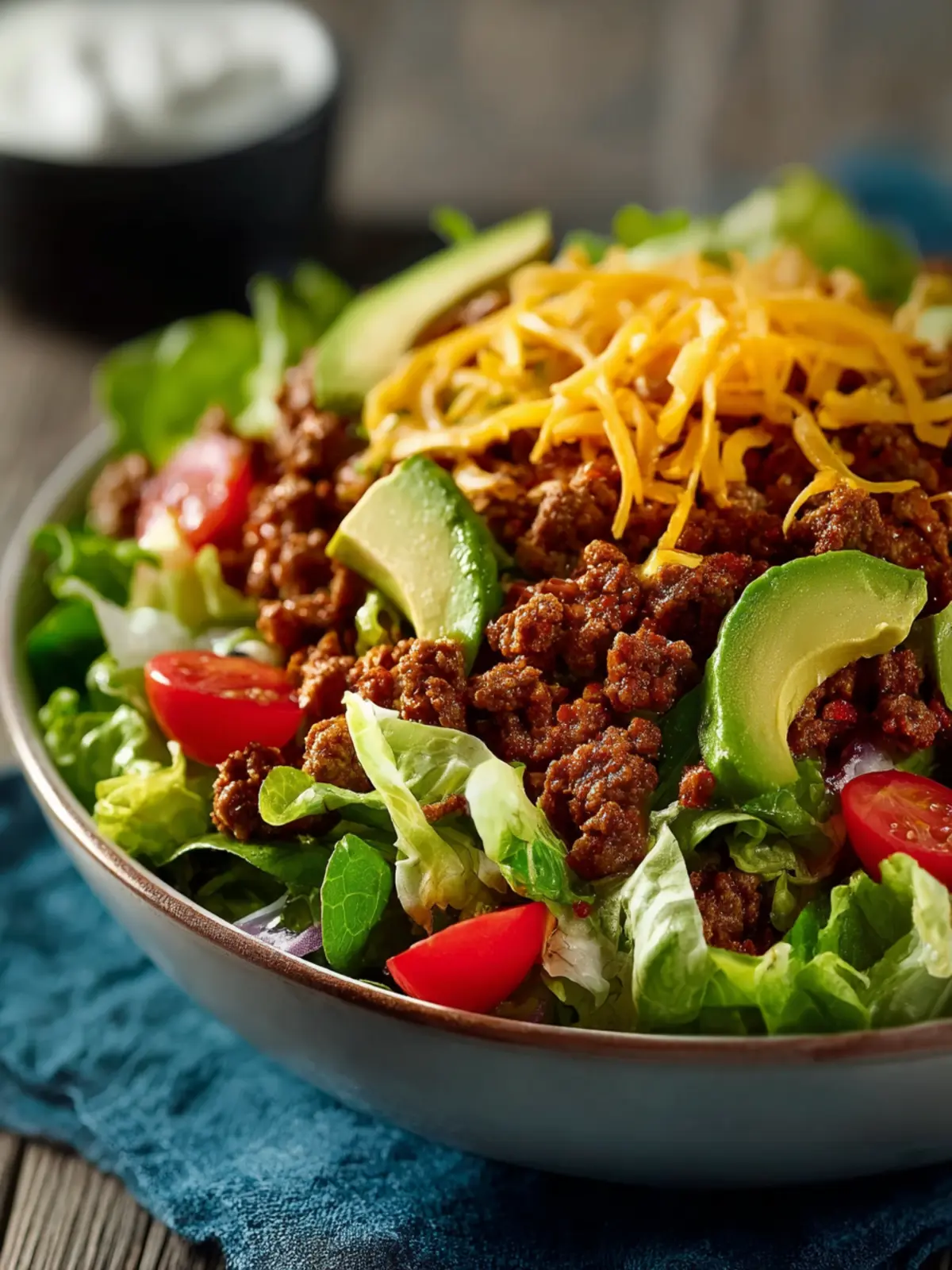 What makes this taco salad special is its versatility and ease of preparation. You can customize it based on what you have in your fridge. Whether you like it mild or with a kick, this dish can be dressed up or down to suit your mood. Plus, ground beef is a fantastic source of protein and iron, while the fresh vegetables provide essential vitamins and minerals.