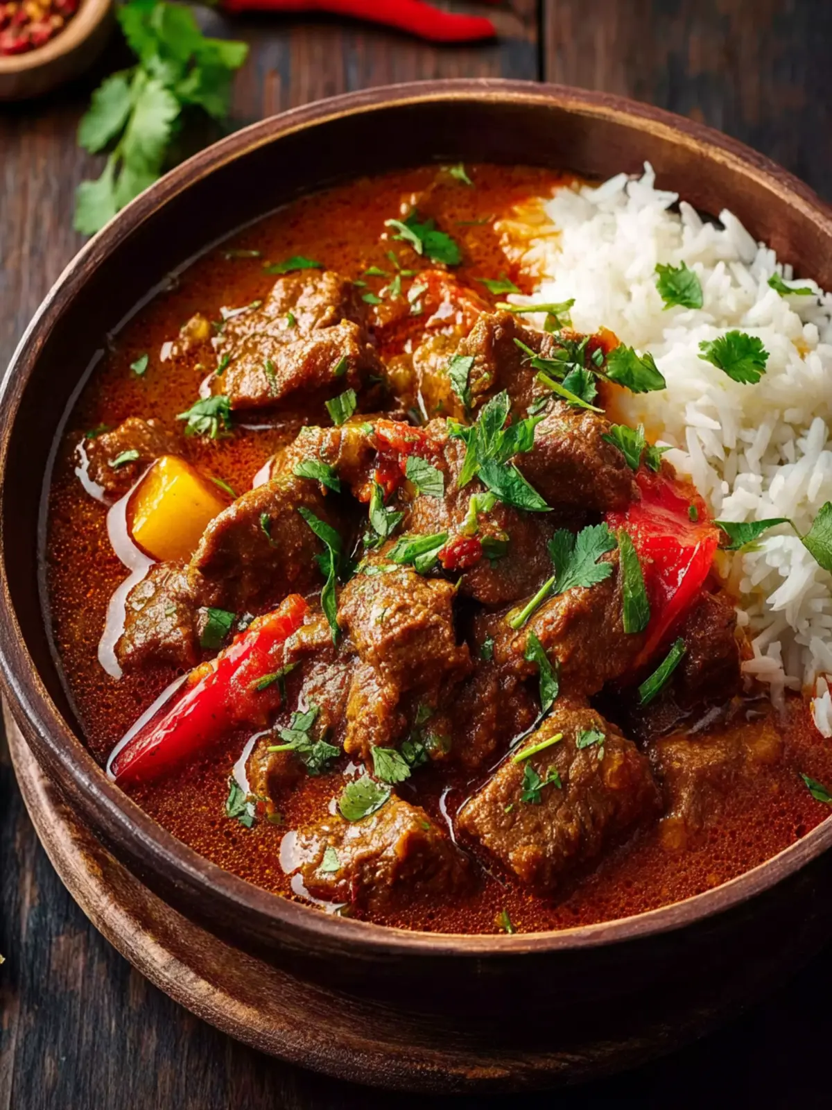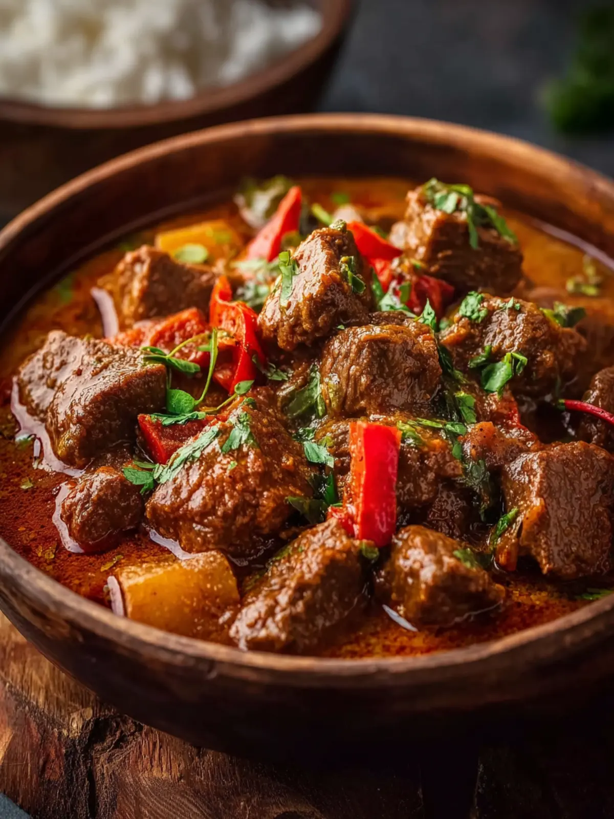 Savory Flavors: The simmering beef absorbs all the flavors of the spices and vegetables, creating a mouthwatering experience. The complexity of cumin, garlic, and bay leaves dances on the palate, inviting you to savor every bite.